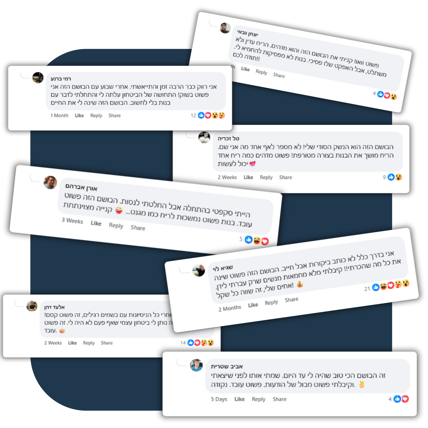 מהמשתמשים סיפרו שהרגישו את השפעת ניחוח הפרומונים שלנו.